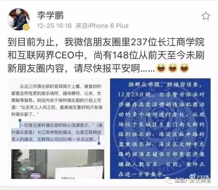 這次北京群眾又雙叒叕立功了,北京警方在12月23日掃黃,三傢俱樂部被端,分別是保利俱樂部、藍黛俱樂部、麗海名媛俱樂部,整個業界都瘋狂了。